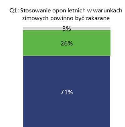 Według najnowszych badań IBRIS1 z początku roku aż 71% Polaków zgadza się z twierdzeniem, że stosowanie opon letnich w warunkach zimowych powinno być zakazane. Dlatego powinien zostać wprowadzony jasny i klarowny zakaz jazdy na oponach letnich – kiedy zachodzi którekolwiek z tych zjawisk pogodowych: mróz, śnieg, lód, gołoledź lub błoto pośniegowe. Dzięki temu ułatwimy sobie życie jako kierowcy i będziemy w takich warunkach mogli wszyscy ostrożnie, ale podróżować.